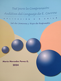 La aplicación en Chile del Test para la Comprensión Auditiva del Lenguaje de Elizabeth Carrow presenta un instrumento destinado a niños de 3.0 a 6 años 11 meses. Su objetivo es evaluar la comprensión del lenguaje considerando vocabulario, morfología y sintaxis. Consta de 101 ítemes y un set de láminas. Su aplicación es sencilla porque requiere que el niño escuche un estímulo auditivo y responda identificando un dibujo en una lámina. Los puntajes obtenidos en la prueba pueden ser interpretados considerando las normas de referencia obtenidas con niños chilenos y los criterios detallados en el manual.